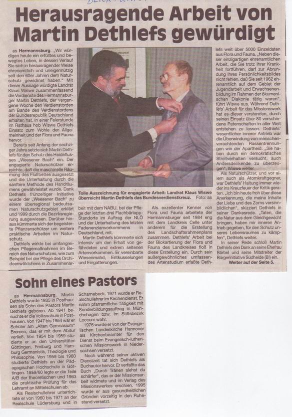 [Schöpfung gegen Atomenergie] [Eine inkompetente Provokation] [Krisengedichte um die Schöpfung] [BI Südheide] [Naturkundliche Veröffentlichungen] [Wertschätzen] [Durch Tränen....] [Bundesverdienstkreuz] [Laudatio] [nicht geeignet ?] [Herausragende...] [andere Ehrungen] [Letzter Brief] [In Memoriam] [Kontakt]
