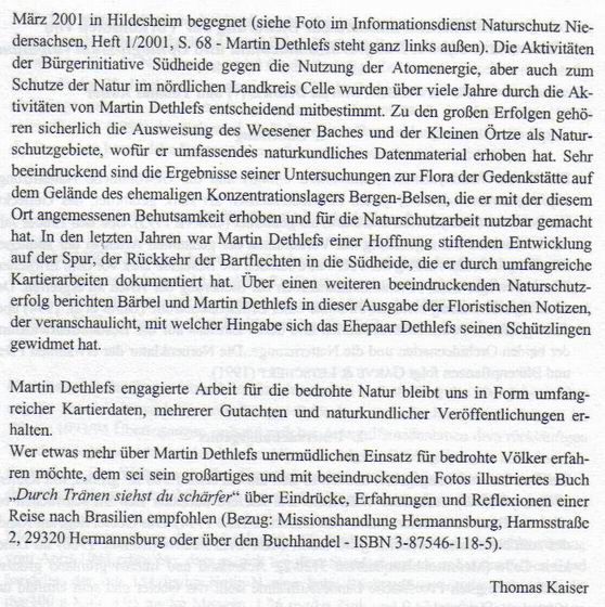 [Schöpfung gegen Atomenergie] [Eine inkompetente Provokation] [Krisengedichte um die Schöpfung] [BI Südheide] [Naturkundliche Veröffentlichungen] [Wertschätzen] [Durch Tränen....] [Bundesverdienstkreuz] [andere Ehrungen] [Letzter Brief] [In Memoriam] [Traueransprache] [Nachruf ELM] [Nachruf NABU] [Wir werden...] [Kontakt]